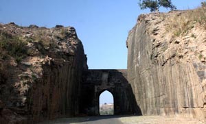 Kati Ghati is located in the ancient town of Chanderi, in the district of Ashoknagar, in the state of Madhya Pradesh, in Central India. It grandly stands at the southern side end of this town. According to the local legends and historians, this particular impressive large gate has been in a successful manner cut out of the live standing huge rock of the hill range which encloses this small town.