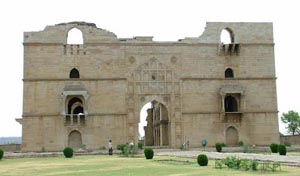 Hindola Mahal is located in the Royal Enclave group of monuments in the Mandu village in the district of Dhar, in the state of Madhya Pradesh in Central India. The Hindola Mahal means the "Swinging Palace". This particular palace has a large meeting hall. It is one of the most sought after tourist destination in the ruined city visited by foreign and domestic tourists.