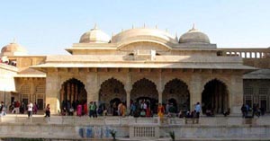Raja Mahal is a well specimen of Mughal architecture with distinctive stone work and multi-layered arcs at the entrance. The entire construction is rectangular structured which is additionally separated into two yards. The chief yard is surrounded by the palace itself, having four storeyed building at the end. The other three sides of the construction possesses five storeyed constructions.